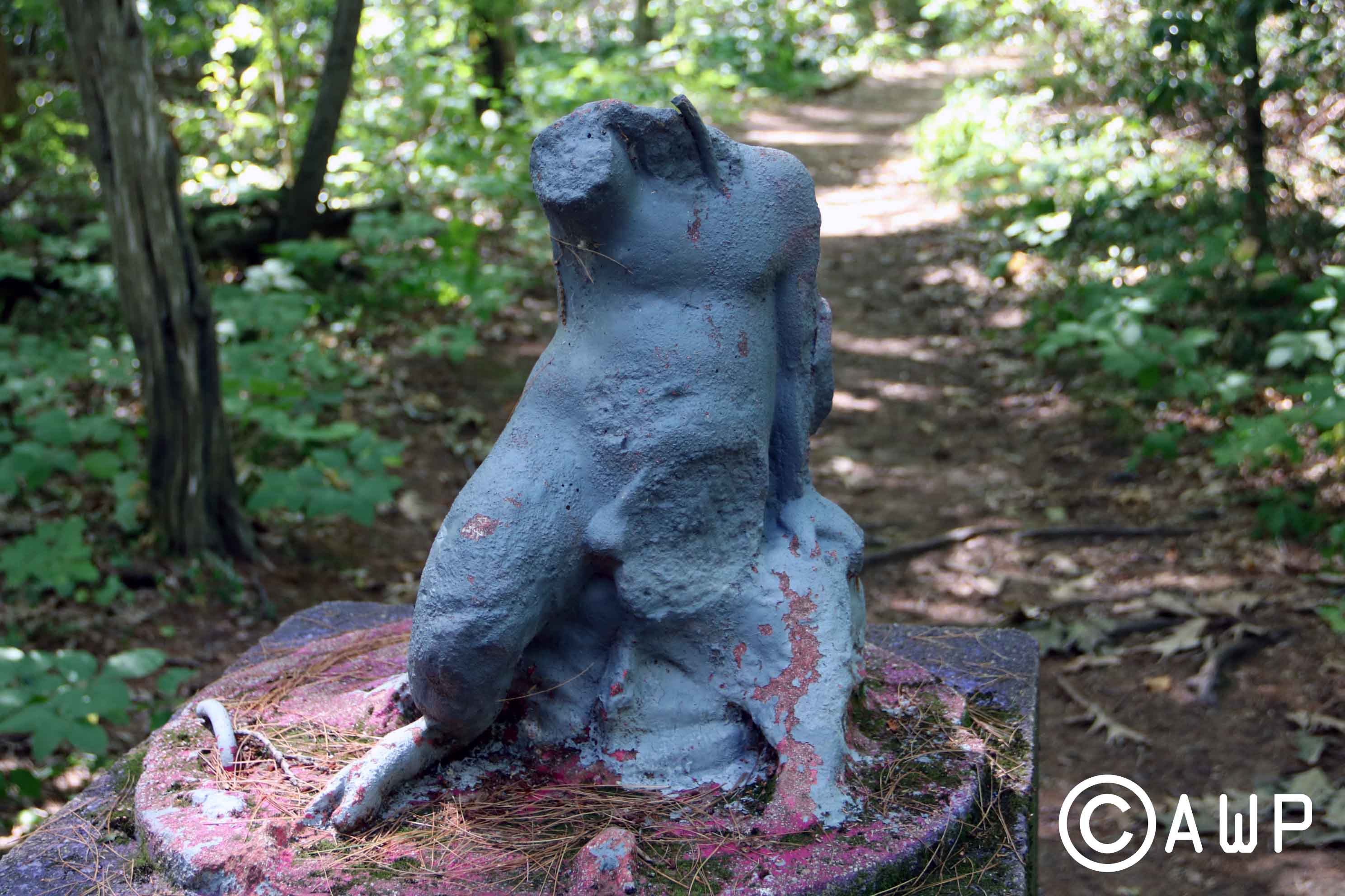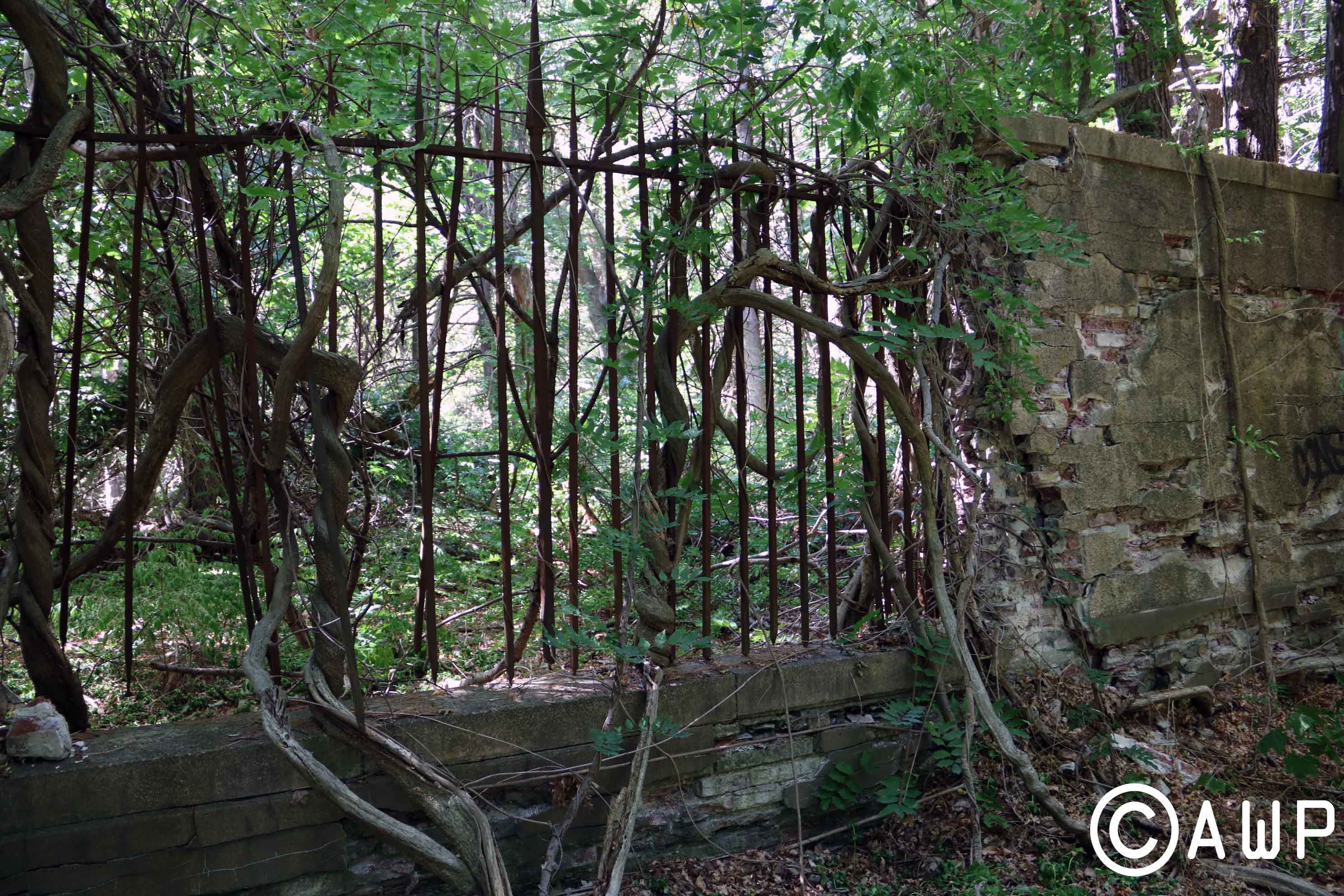 I will not be giving away anything on this location to preserve its beauty. I know that the real hunters on here will find it (you know who you are), but I also know that those are the people that will respect it. Do not ask us for any information on how to find this place. I’m sorry. But I really want the JME House to remain as untouched by the outside world as possible. If you have a problem with that, then we’re just going to have to agree to disagree. As I mentioned to you earlier, I was once again flying solo on this trip. And so, after a long day of traveling and running on two hours of sleep, I found myself trekking alone deep into the unknown in search of this illusive treasure. It was sunny. It was hot. It was rustic. Luckily I came prepared. Lots of water. Lots of food. A map. And my compass. Thank you, Eagle Scout training. Luckily it didn’t take long to cross into the former kingdom of Jaimie Mantzel. After a long walk down a lonely pathway, I found myself gazing upon a most peculiar site. The first location to greet you is a small hut that was the former sauna/hot tub. Though it is now completely full of mosquitoes and bugs. Next to this is what the man himself came to call “The Banana Building.” What was once an open workshop for creativity is now just a disastrous pile of rubble. But up the hill, guided by a blue climbing rope, is where the adventure truly begins.
