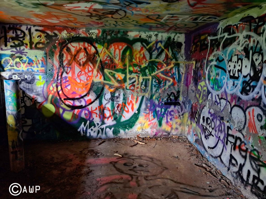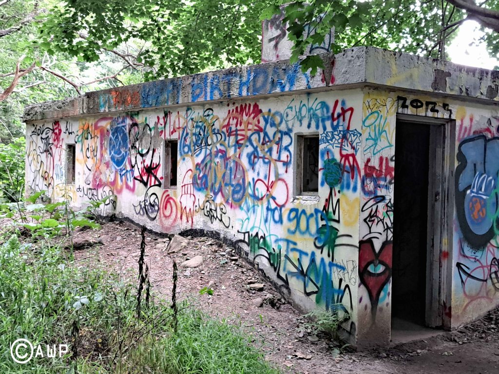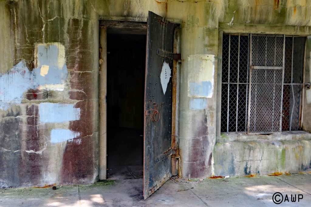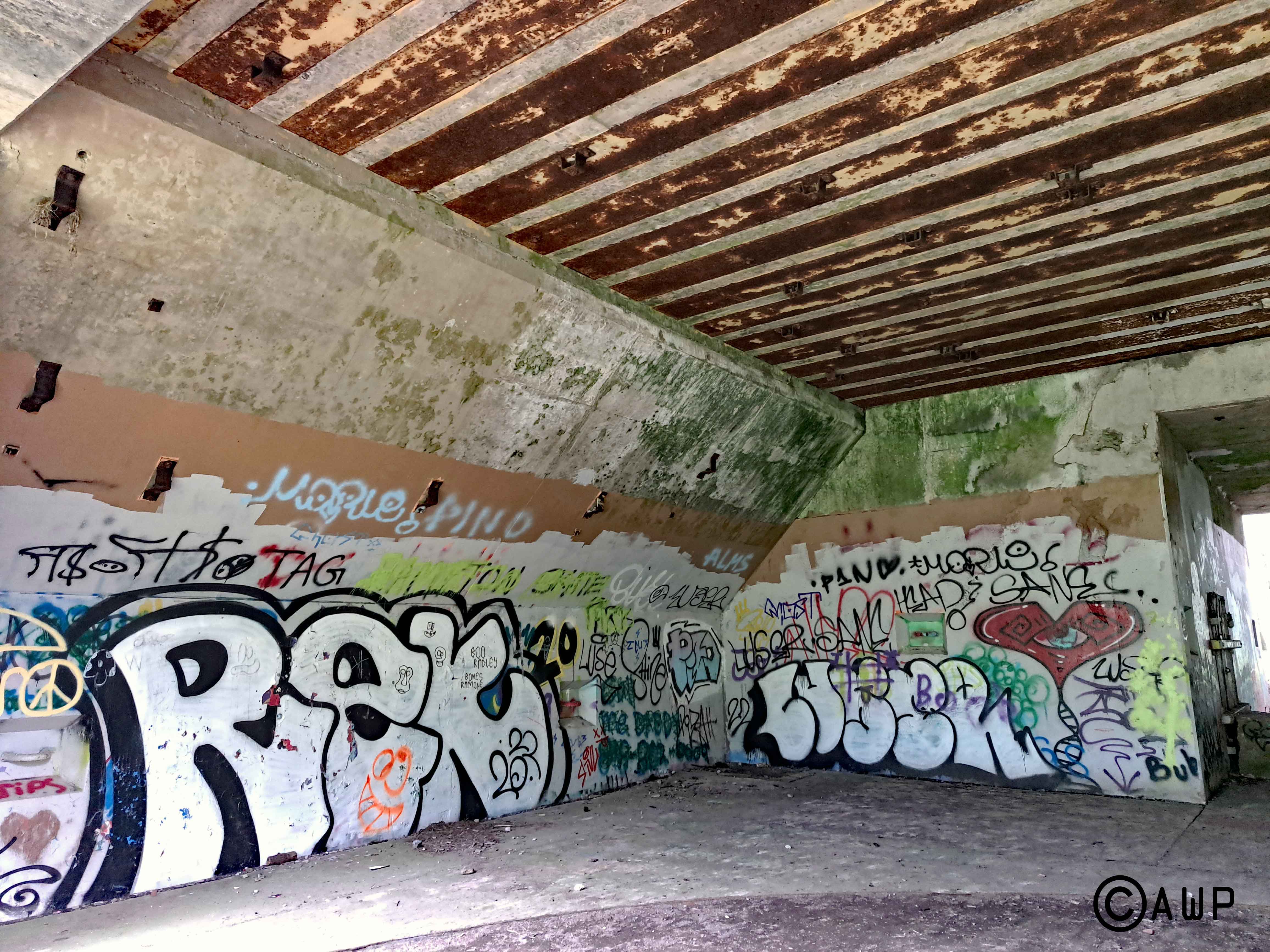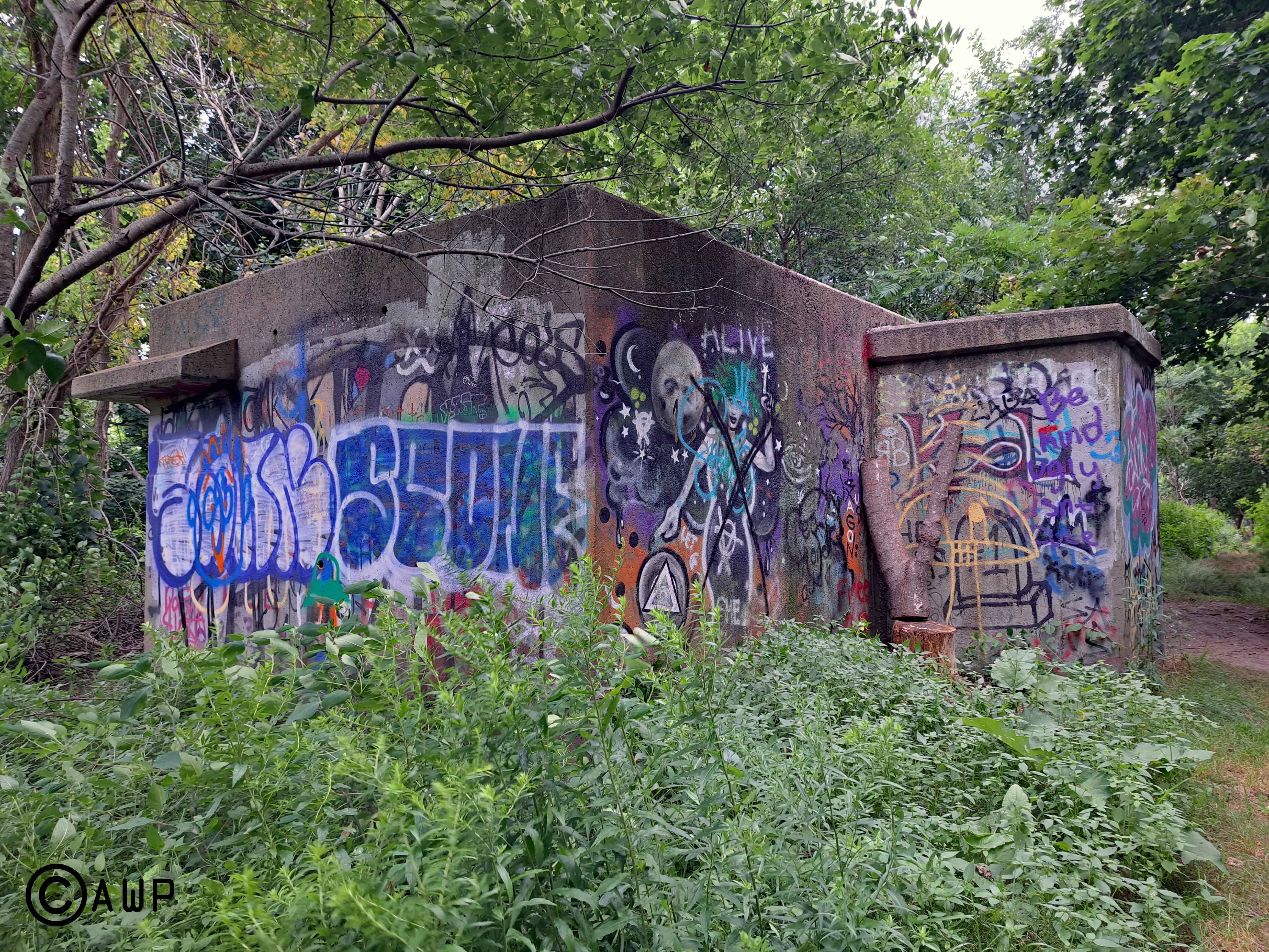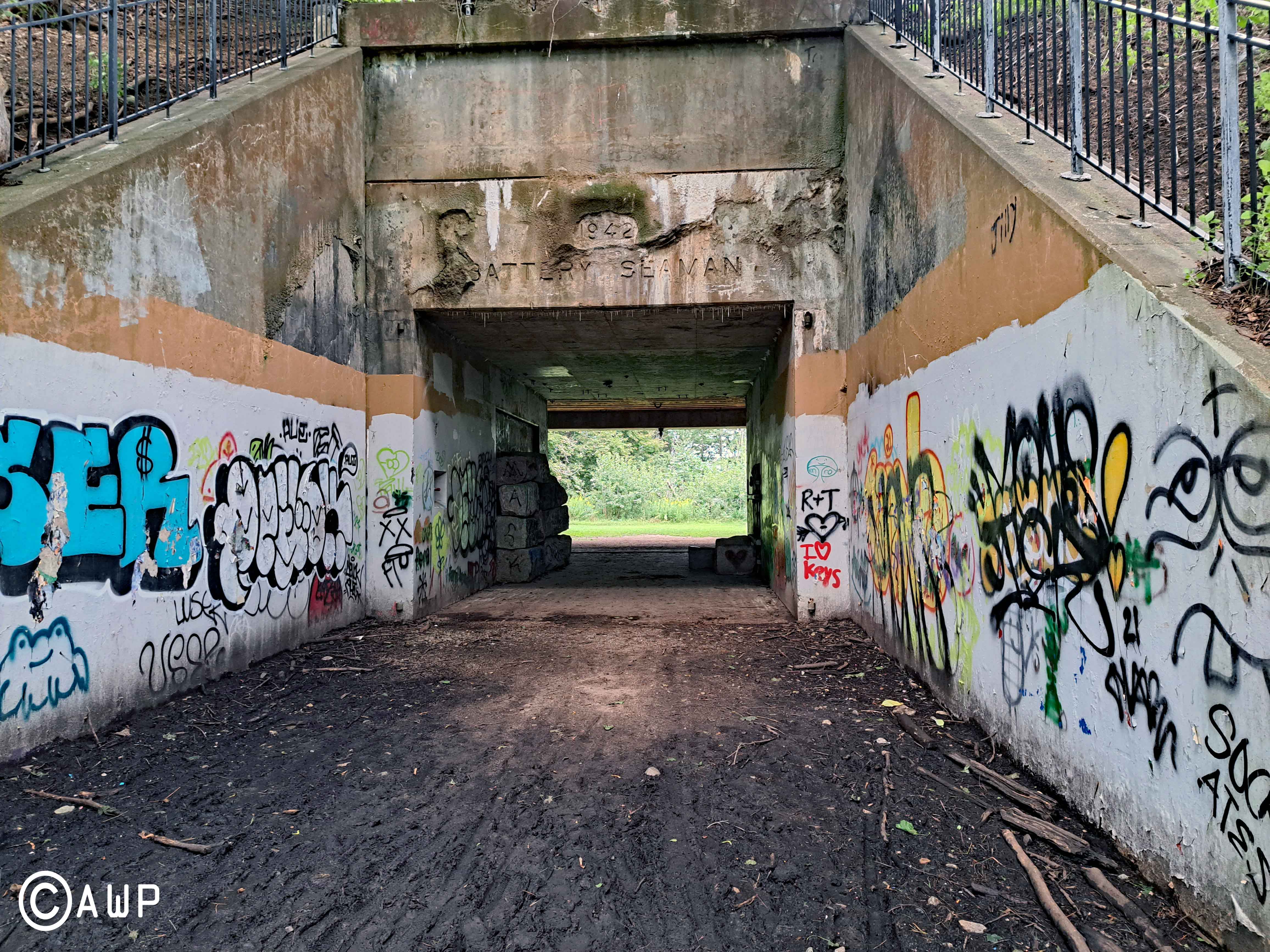 The abandoned batteries of Fort Dearborn loom out of the woods like great concrete titans. Battery Dearborn is the first to greet you with Fort Seamen farther down the line. Each is nearly identical in structure, with a wide entrance in the middle giving way to a great open space. If you look closely, you can still make out the names of each branded across their hulls. The two are a good quarter of a mile apart and are connected by a long filled-in tunnel system. The entrances to these tunnels are blocked by rusty metal gates that are shored up by plenty of concrete blocks and other debris. There are several ways to peak inside though. Trespassers are clearly not welcome. With a good pair of shoes, you can climb the steep slope to the top of each battery. There, you are treated with a wonderful view of the Atlantic seacoast that this old warhorse once watched over. There are a pair of pillboxes located in proximity to each battery. Both are just concrete hollowed out shells that have been plastered in vibrant graffiti. But still, they are pretty cool to check out. Hanging out in there kind of made us feel like kids again, playing Army out in the woods. Even during this time of year, though, there were mosquitos bloody everywhere.