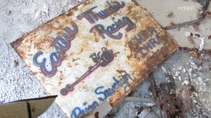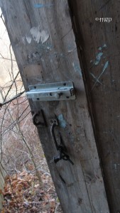 The front door of the house was wide open. Inside, it was quiet as a tomb. The front door entered right into the kitchen, which had been completely gutted. A few items of liter lay strew about. The old stove was curiously still there and in good shape. We actually found very little evidence of vandalism in the house. There was a couple graffiti designs tagged in one of the rooms, but that was about it. The rest of the house was empty. There were several large dark rooms, but pretty much everything had been cleared out. We were unable to find any entrance to the upstairs, and the house did not appear to have a basement. We did find a haunting clue as to who might have been the final occupant of the house: an old cane still stood in what appeared to be the family room. A yellowing copy of the Lord’s Prayer was still tacked to the wall. And judging from the modifications to the house’s bathroom, an elderly person once dwelled here. Perhaps their spirit still haunted these dark hallways.